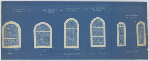 Opschrift: Eglise Notre Dame de Herent. Omschrijving plan: glasraam Datum KCML: 01/01/1899 Archiefnummer: B0371