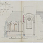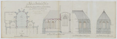 Opschrift: Eglise de Lembecq-lez-Hal. Restauration interieure et exterieure de l'ancien choeur. Omschrijving plan: plattegrond niveau 0, plattegrond, voor- en zijaanzicht en doorsnede koor Datum KCML: deze informatie wordt niet vermeld op het archiefstuk Archiefnummer: B0349