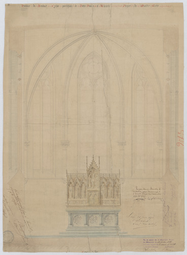 Opschrift: Province de Brabant. Eglise paroissiale de Notre Dame à Winxele. Projet du Maître-Autel. Omschrijving plan: aanzicht hoofdaltaar Datum KCML: 25/07/1891 Archiefnummer: B0375