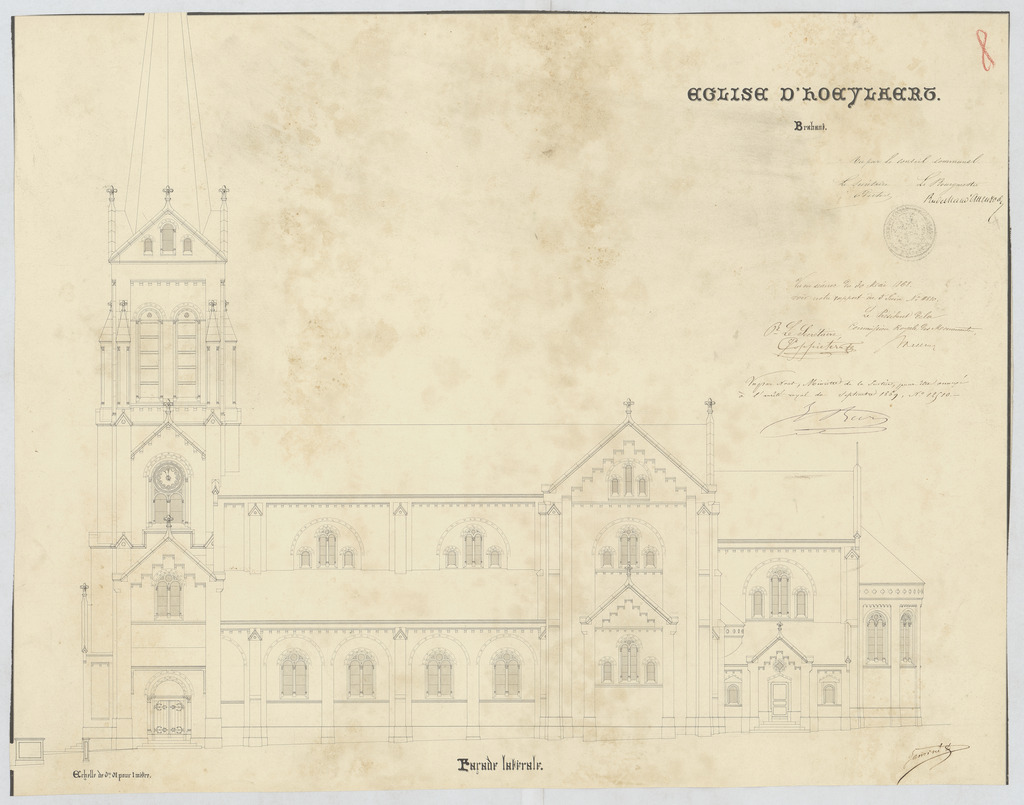 Opschrift: Eglise de Hoeylaers. Omschrijving plan: opstand zijgevel 1 Datum KCML: 30/05/1868 Archiefnummer: B0396