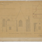 Opschrift: Restauration de l'Eglise de Lennick St. Quentin et construction d'une nouvelle sacristie. Omschrijving plan: opstand zijgevel 1, opstand en doorsnede sacristie Datum KCML: deze informatie wordt niet vermeld op het archiefstuk Archiefnummer: B0499