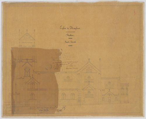 Opschrift: Eglise de Hoeylaert. Omschrijving plan: opstand zijgevel 1 Datum KCML: 01/10/1870 Archiefnummer: B0401