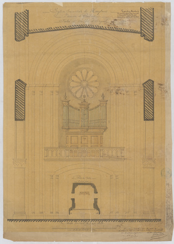 Opschrift: Eglise paroissiale de Hoeylaert. Porvince de Brabant. Jubé & Buffet d'orgue. Omschrijving plan: plattegrond en aanzicht doksaal en orgelkast Datum KCML: 17/09/1887 Archiefnummer: B0406