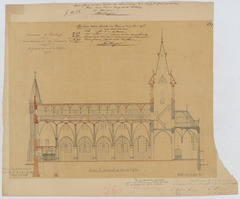 Opschrift: Commune d'Everbergh. Arrondissement de Louvain. Agrandissement de l'Eglise. Omschrijving plan: langsdoorsnede Datum KCML: 25/09/1886 Archiefnummer: B0475