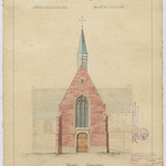 Opschrift: Gemeente Loonbeek. Vergrooting der Parochie kerk en herstelling van het kloktorentje. Omschrijving plan: opstand W-gevel Datum KCML: 22/02/1908 Archiefnummer: B0422