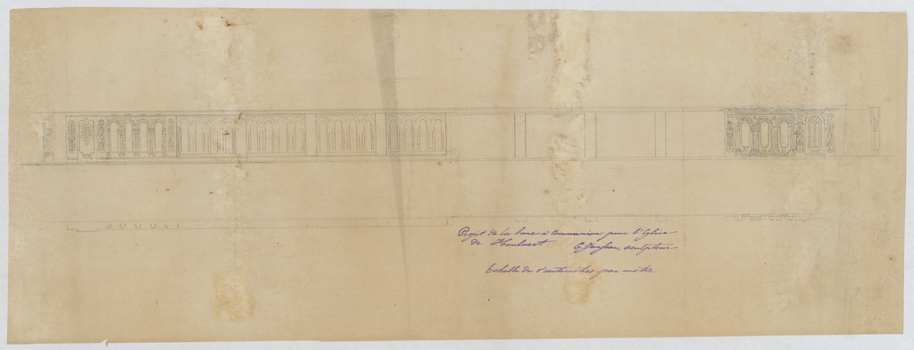 Opschrift: deze informatie wordt niet vermeld op het archiefstuk Omschrijving plan: plattegrond en aanzicht communiebank Datum KCML: 12/12/1874 Archiefnummer: B0405