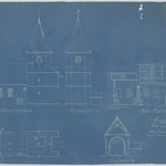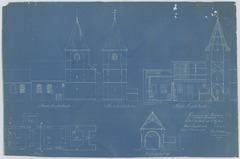 Opschrift: Commune de Wezeren. Etat actuel de l'Eglise. Omschrijving plan: plattegrond niveau 0, opstand voor- en zijgevel, langsdoorsnede, dwarsdoorsnede Datum KCML: deze informatie wordt niet vermeld op het archiefstuk Archiefnummer: B0493