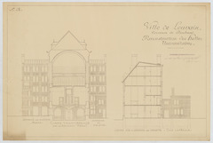 Opschrift: Ville de Louvain. Province de Brabant. Reconstruction des halles universitaires. Omschrijving plan: dwarsdoorsneden Datum KCML: deze informatie wordt niet vermeld op het archiefstuk Archiefnummer: B0590