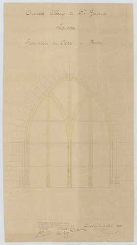 Opschrift: Ancienne abbaye de Ste. Gertrude. Louvain. Restauration de Cloître - Fenêtre. Omschrijving plan: aanzicht raam Datum KCML: 10/11/1927 Archiefnummer: B0542