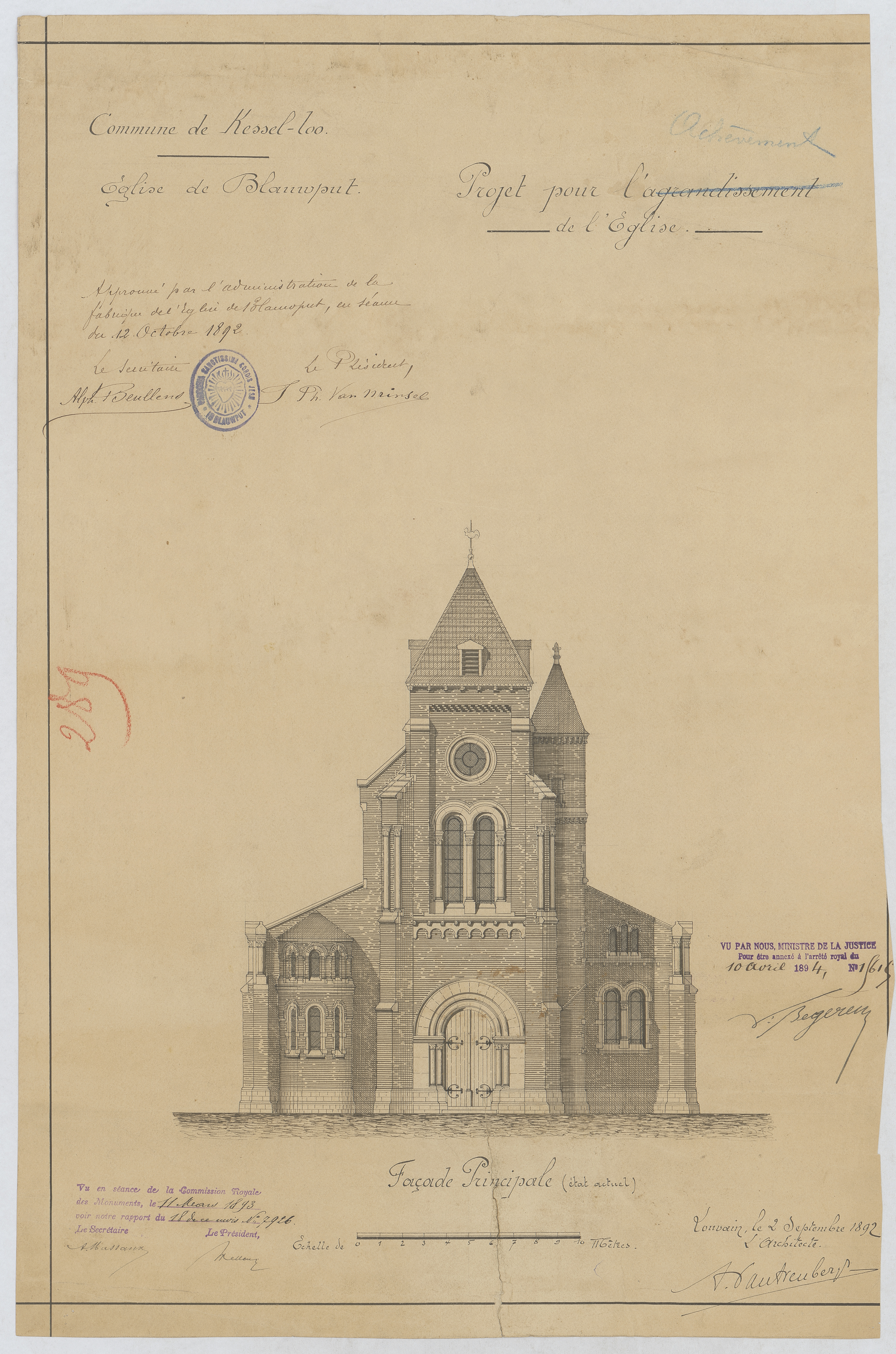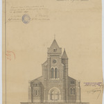 Opschrift: Commune de Kessel-Loo. Eglise de Blauwput. Projet pour l'agrandissement de l'Eglise. Omschrijving plan: opstand voorgevel Datum KCML: 11/03/1893 Archiefnummer: B0638