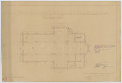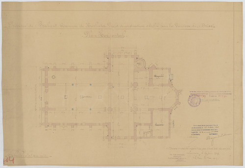 Opschrift: Province de Brabant. Commune de Neerlinter. Projet de construction d'Eglise pour la Paroisse du Dries. Omschrijving plan: plattegrond niveau 0 Datum KCML: 12/10/1907 Archiefnummer: B0653