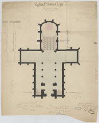 Opschrift: Eglise St. Martin à Isque (Brabant). Plan Général du Dallage. Omschrijving plan: plattegrond niveau 0, aanzicht vloer Datum KCML: 07/02/1871 Archiefnummer: B0778