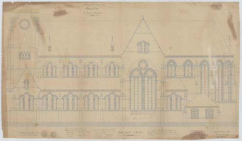 Opschrift: Ontwerp voor het bouwen eener Nieuwe Kerk te Pamel (Brabant) Omschrijving plan: opstand zijgevel 1 Datum KCML: 30/09/1899 Archiefnummer: B0841