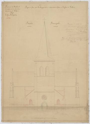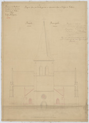 Opschrift: Projet de plan pour les changements et restaurations à faire à l'Eglise de Sichem. Omschrijving plan: opstand voorgevel Datum KCML: 14/06/1873 Archiefnummer: B0872