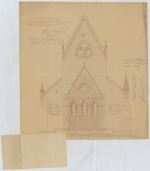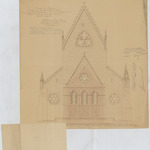 Opschrift: Province de Brabant. Commune de Lombeek-Notre Dame. Projet pour la restauration intérieure et exterieur du choeur et pour la construction d'une nouvelle Sacristie. Omschrijving plan: opstand W-gevel Datum KCML: 18/11/1905 Archiefnummer: B0822_a01