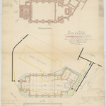 Opschrift: Province de Brabant. Commune d'Oudenaeken. Construction d'une nouvelle église paroissiale et d'une clôture de cimetière en remplacement d'une ancienne à démolir. Omschrijving plan: plattegrond niveau 0, plattegrond niveau -1 Datum KCML: 30/01/1909 Archiefnummer: B0888