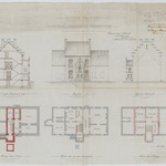 Opschrift: Commune d'Elinghen. Amélioration du presbytère. Omschrijving plan: plattegrond niveau 0, plattegrond niveau -1, plattegrond niveau 1, opstand voorgevel, opstand zijgevel, dwarsdoorsnede Datum KCML: 30/11/1889 Archiefnummer: B0808