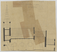 Opschrift: Agrandissement de l'Eglise de Ruysbroeck. Etat primitif de l'Eglise. Omschrijving plan: langsdoorsnede Datum KCML: deze informatie wordt niet vermeld op het archiefstuk Archiefnummer: B0911