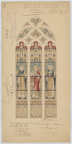 Opschrift: deze informatie wordt niet vermeld op het archiefstuk Omschrijving plan: glasraam Datum KCML: 10/04/1897 Archiefnummer: B0968