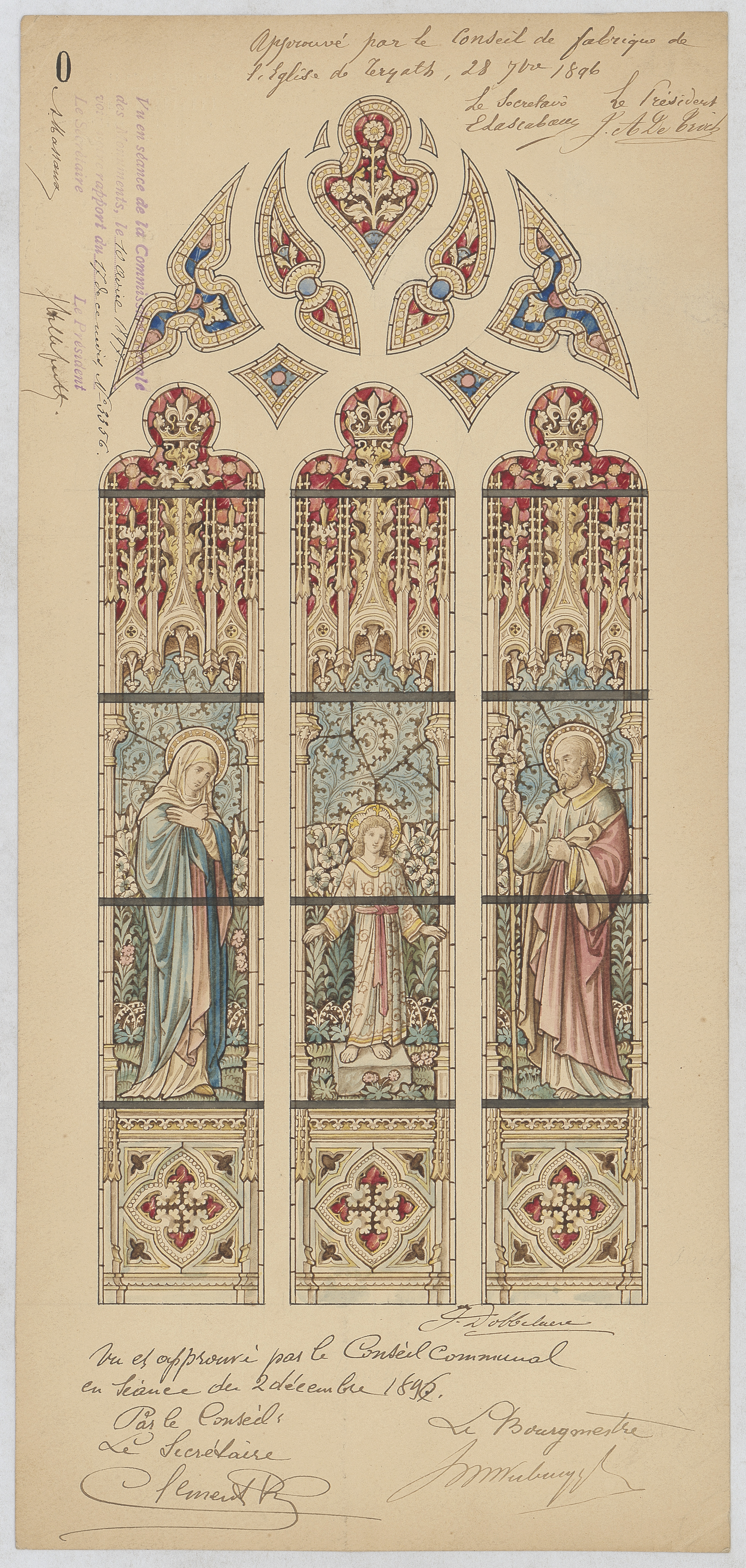Opschrift: deze informatie wordt niet vermeld op het archiefstuk Omschrijving plan: glasraam Datum KCML: 10/04/1897 Archiefnummer: B0971