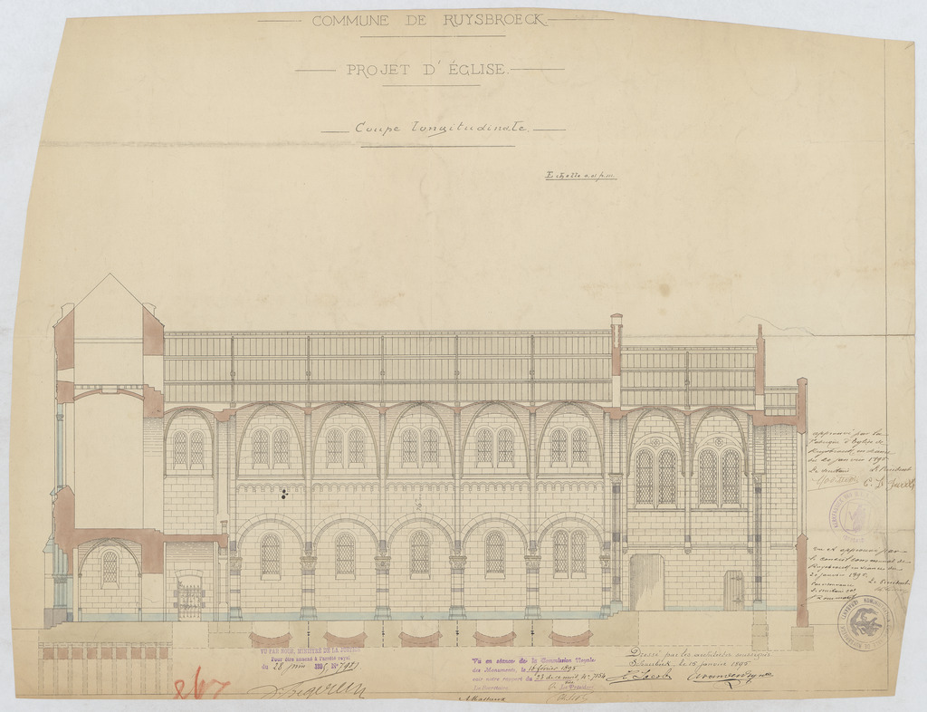 Opschrift: Commune de Ruysbroeck. Projet d'église. Omschrijving plan: langsdoorsnede Datum KCML: 16/02/1895 Archiefnummer: B0906