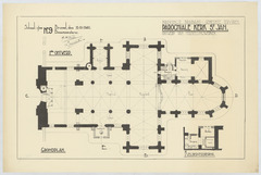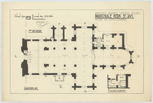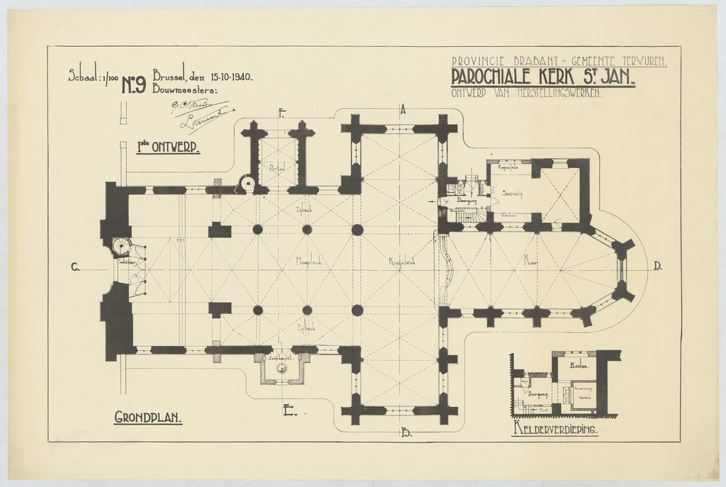 Opschrift: Provincie Brabant - Gemeente Tervuren. Parochiale kerk St.-Jan. Ontwerp van herstellingswerken. Ontwerp van herstellingswerken. Omschrijving plan: plattegrond niveau 0 Datum KCML: deze informatie wordt niet vermeld op het archiefstuk Archiefnummer: B0999