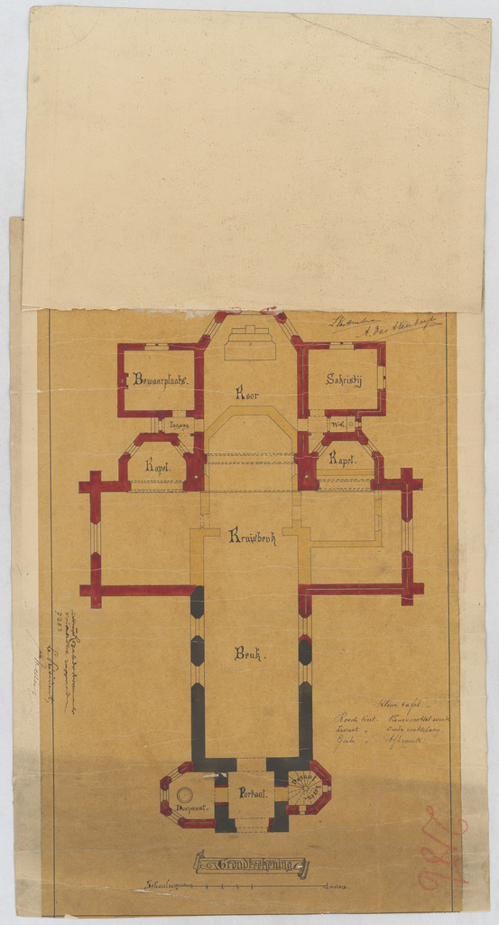 Drager: kalk op papier Techniek: pen, opgehoogd met aquarel Afmetingen (h x b in mm): 458 x 317 mm Schaal: 1/100