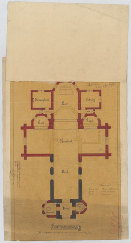 Opschrift: Gemeente Meensel Kiesegem. Ontwerp voor het vergrooten der kerk van Meensel. Omschrijving plan: plattegrond niveau 0 Datum KCML: 18/01/1890 Archiefnummer: B1032_02