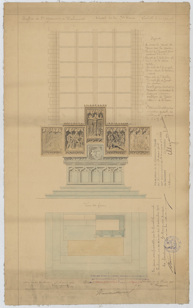 Opschrift: Eglise de St. Germain à Tirlemont. Autel de la St. Croix. Omschrijving plan: plattegrond en aanzicht altaar Datum KCML: 19/03/1904 Archiefnummer: B1061
