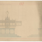 Opschrift: Parochiekerk van Schaffen. Teekening van den hoogen autaar. Omschrijving plan: voor- en zijaanzicht hoofdaltaar Datum KCML: 13/04/1889 Archiefnummer: B2161