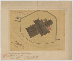 Opschrift: Plan d'ensemble de l'Eglise Notre Dame à Vilvoorde et ses abords, pour être arrangé à une démande, pour construire une nouvelle Sacristie. Omschrijving plan: situatieplan Datum KCML: deze informatie wordt niet vermeld op het archiefstuk Archiefnummer: B1105