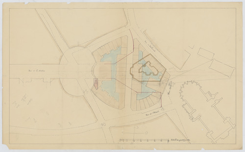 Opschrift: (Op de achterzijde: "2e projet Fr… et projet du Mr. Janlet".) Omschrijving plan: stratenplan deel Leuven Datum KCML: deze informatie wordt niet vermeld op het archiefstuk Archiefnummer: B2158