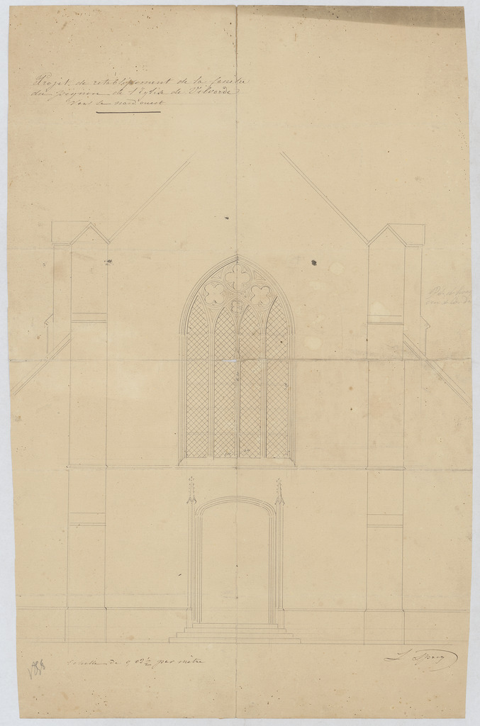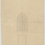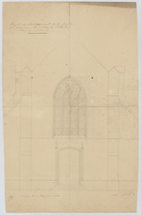Opschrift: Projet de retablissement de la fenêtre du pignon de l'Eglise de Vilvorde vert le nord ouest. Omschrijving plan: opstand W-gevel Datum KCML: deze informatie wordt niet vermeld op het archiefstuk Archiefnummer: B1115