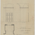 Opschrift: Ville de Bruxelles. Eglise de Saint Jacques-sur-Caudenberg. Projet d'installation d'une chapelle des fonts baptismaux. Etat nouveau. Omschrijving plan: plattegrond niveau 0, plattegrond doopkapel, voor- en zijaanzicht doopkapel Datum KCML: 7/09/1895 Archiefnummer: B1235