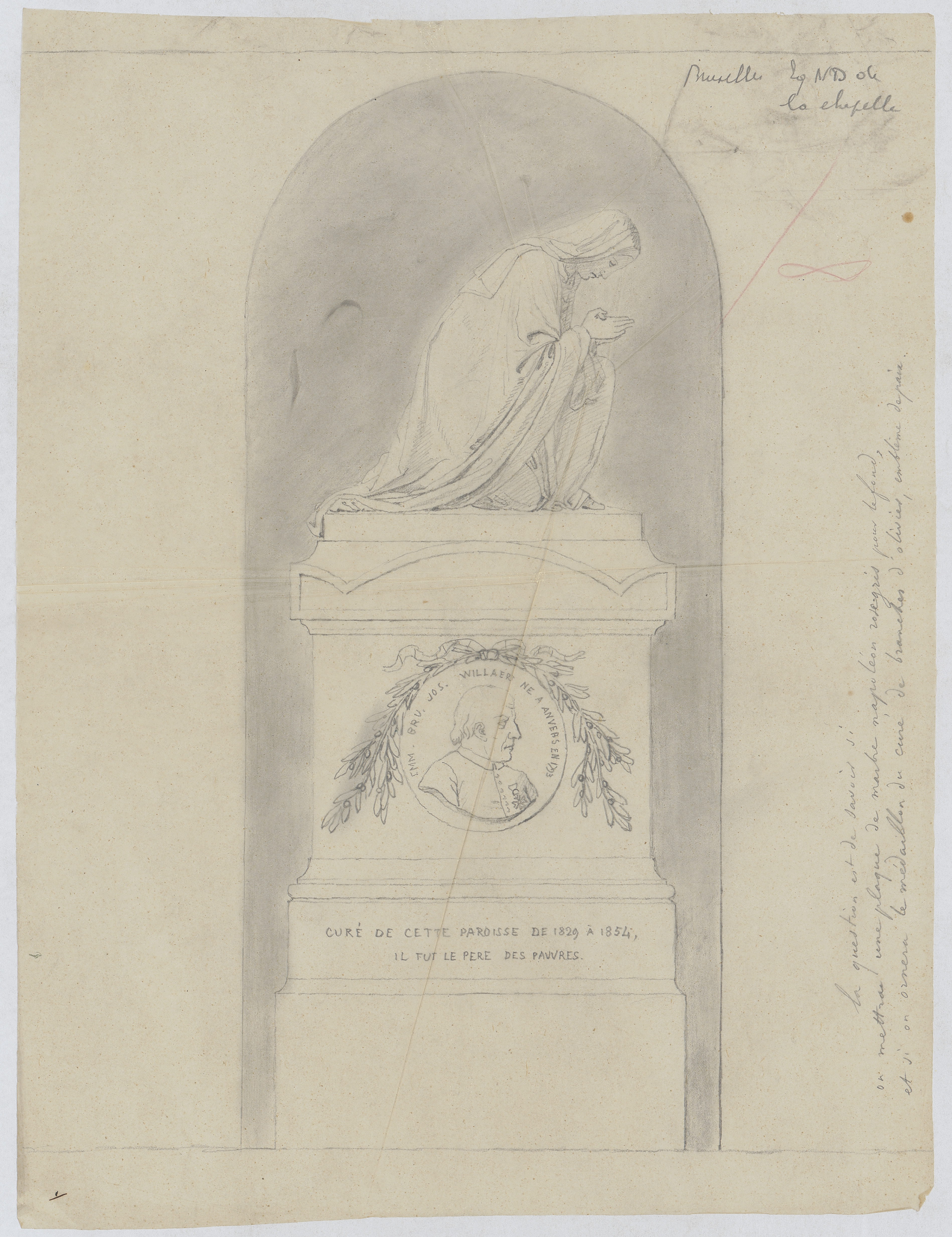 Opschrift: Bruxelles Eg. ND de la chapelle Omschrijving plan: aanzicht grafsteen pastoor Willaert Datum KCML: deze informatie wordt niet vermeld op het archiefstuk Archiefnummer: B1225