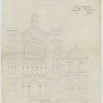 Opschrift: Synagogue de Bruxelles. Elévation. Omschrijving plan: opstand voorgevel Datum KCML: 27/06/1874 Archiefnummer: B1290