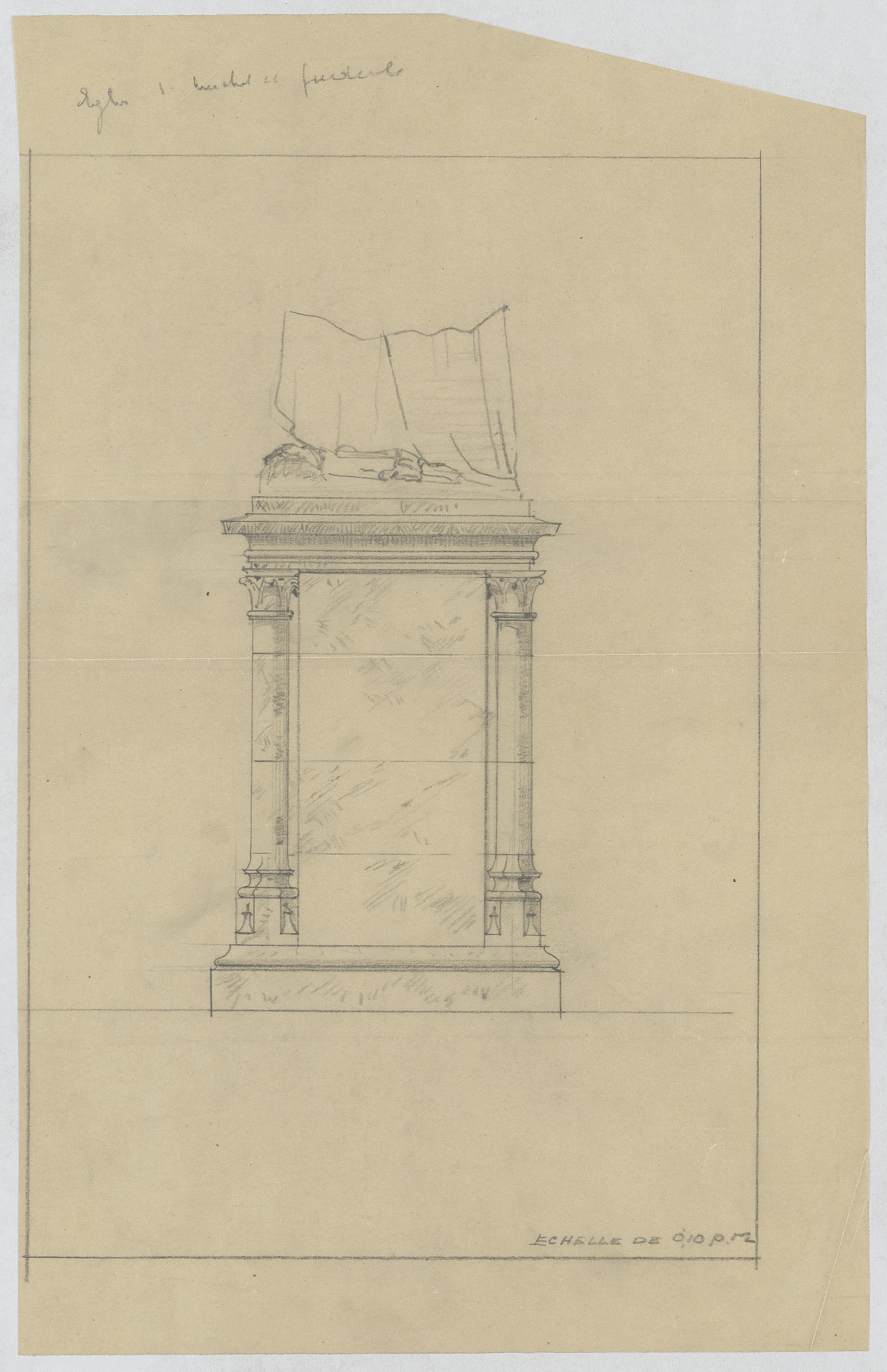 Opschrift: Eglise S. Michel et Gudule Omschrijving plan: aanzicht voetstuk Datum KCML: deze informatie wordt niet vermeld op het archiefstuk Archiefnummer: B1267