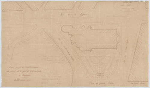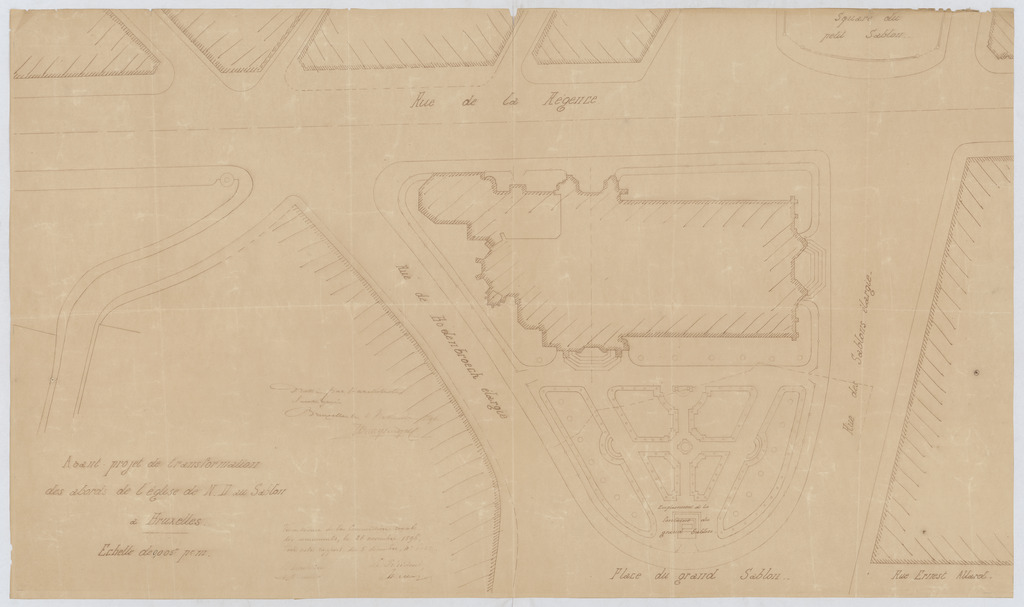 Opschrift: Avant-projet de transformation des abords de l'église de N.D. au Sablon à Bruxelles. Omschrijving plan: situatieplan Datum KCML: 28/11/1896 Archiefnummer: B1197