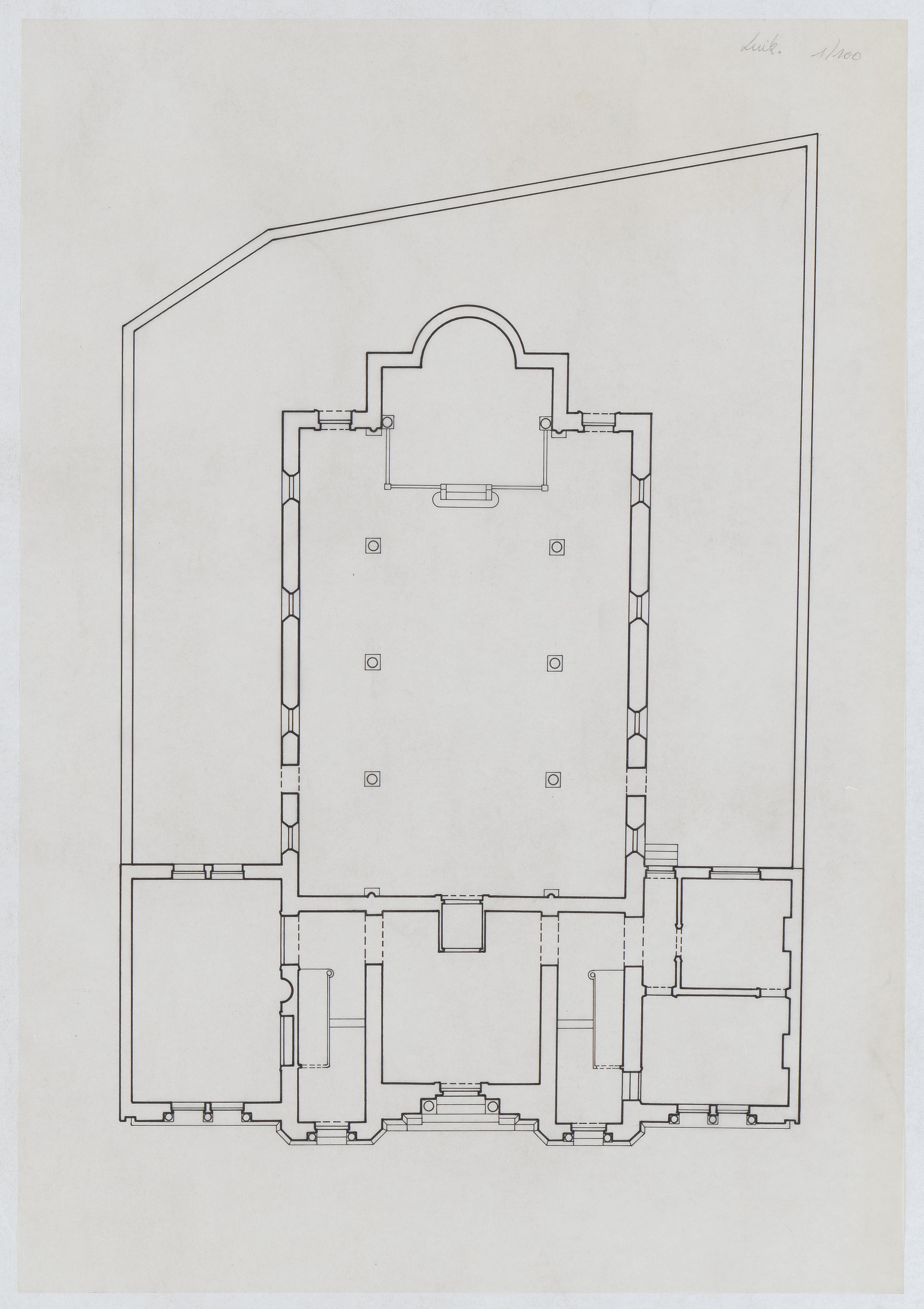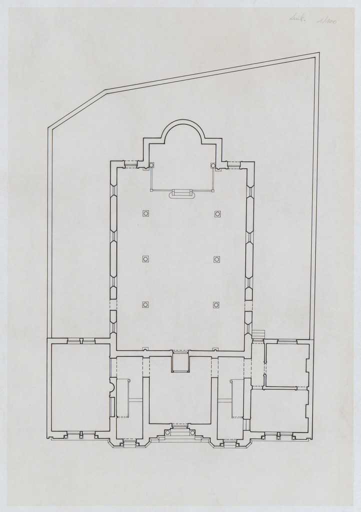 Opschrift: deze informatie wordt niet vermeld op het archiefstuk Omschrijving plan: plattegrond niveau 0 Datum KCML: deze informatie wordt niet vermeld op het archiefstuk Archiefnummer: B1301