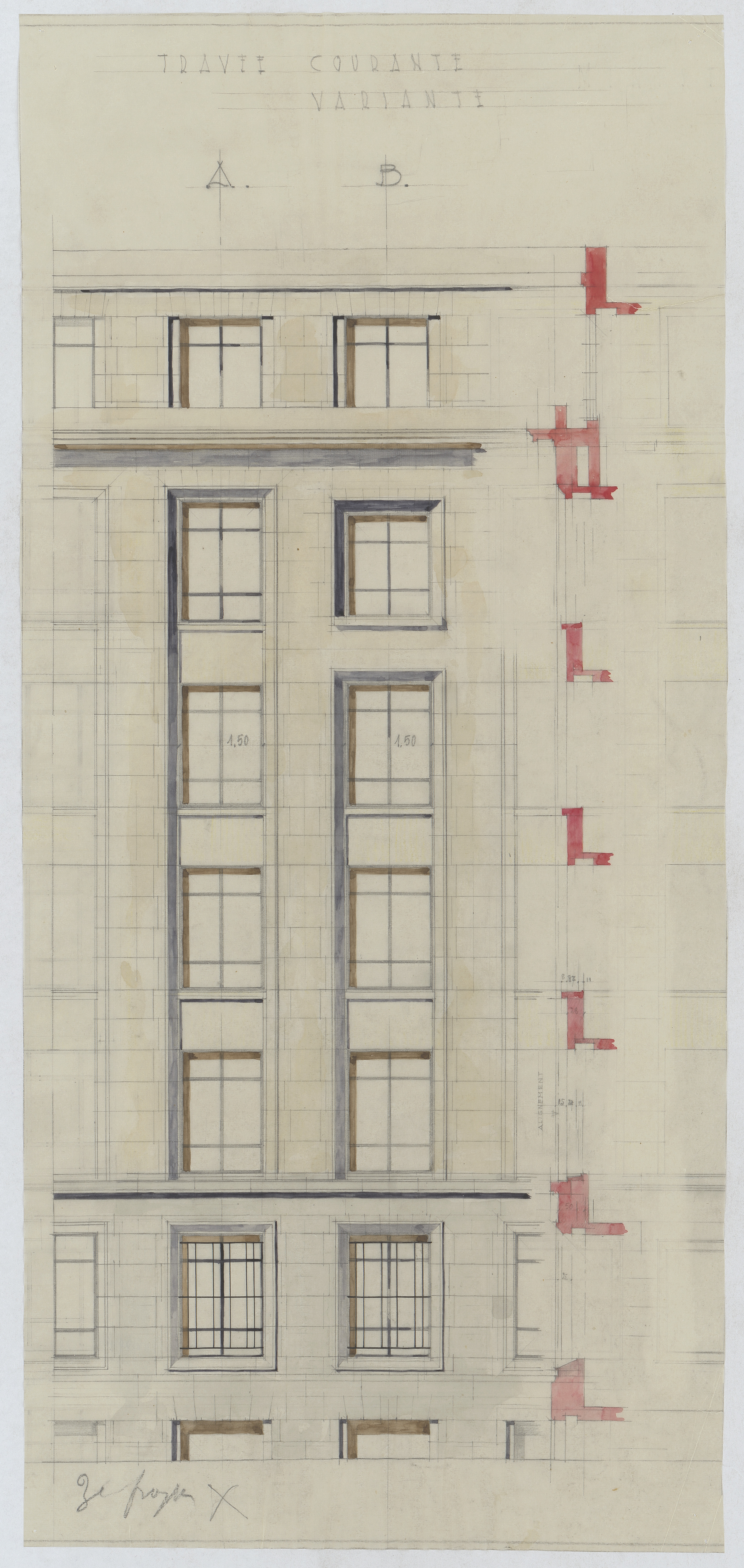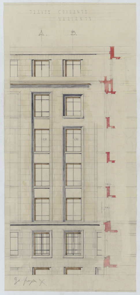 Opschrift: Travee courante variante. Omschrijving plan: opstand travee Datum KCML: deze informatie wordt niet vermeld op het archiefstuk Archiefnummer: B1329