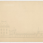 Opschrift: Exposé d'une combinaison pour l'agrandissement et l'appropriation du Musée d'armures, d'antiquités et d'artillerie de la porte de Hal. Omschrijving plan: opstand zijgevel 1 Datum KCML: deze informatie wordt niet vermeld op het archiefstuk Archiefnummer: B1422