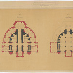 Opschrift: Projet de restauration et d'agrandissement du Musée royal d'Antiquités, d'Armures & d'Artillerie. Porte de Hal. Omschrijving plan: plattegrond niveau 0, plattegrond niveau 1 Datum KCML: deze informatie wordt niet vermeld op het archiefstuk Archiefnummer: B1418