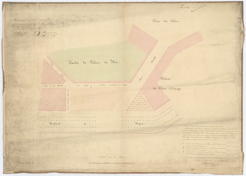 Opschrift: Annexe à l'expertise d'immeubles appartenant à la ville de Bruxelles. Omschrijving plan: situatieplan Datum KCML: deze informatie wordt niet vermeld op het archiefstuk Archiefnummer: B1469 Ontwerper: mogelijks Coppens, F.