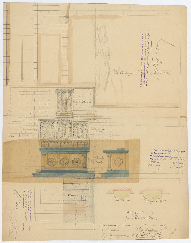 Opschrift: Petit autel pour l'Eglise d'Anderlecht. Omschrijving plan: plattegrond, voor- en zijaanzicht zijaltaar Datum KCML: 25/06/1898 Archiefnummer: B1598