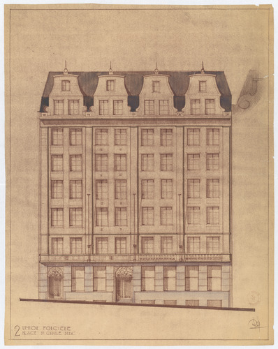 Opschrift: Union foncière. Place St.-Gudule Brux. Omschrijving plan: opstand voorgevel Datum KCML: deze informatie wordt niet vermeld op het archiefstuk Archiefnummer: B1507
