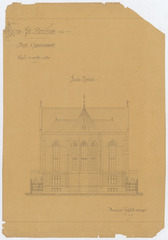 Opschrift: Eglise St. Boniface. Projet d'Agrandissement. Omschrijving plan: opstand achtergevel Datum KCML: deze informatie wordt niet vermeld op het archiefstuk Archiefnummer: B1634