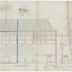 Opschrift: Reconstruction de la façade du Temple des Augustins et construction de la nouvelle église de la Sainte Trinité au quartier de Ten-Bosch. Omschrijving plan: langsdoorsnede, dwarsdoorsnede Datum KCML: 18/03/1893 Archiefnummer: B1613