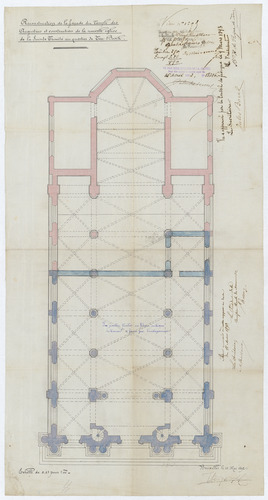 Opschrift: Reconstruction de la façade du Temple des Augustins et construction de la nouvelle église de la Sainte Trinité au quartier de Ten-Bosch. Omschrijving plan: plattegrond niveau 0 Datum KCML: 18/03/1893 Archiefnummer: B1612
