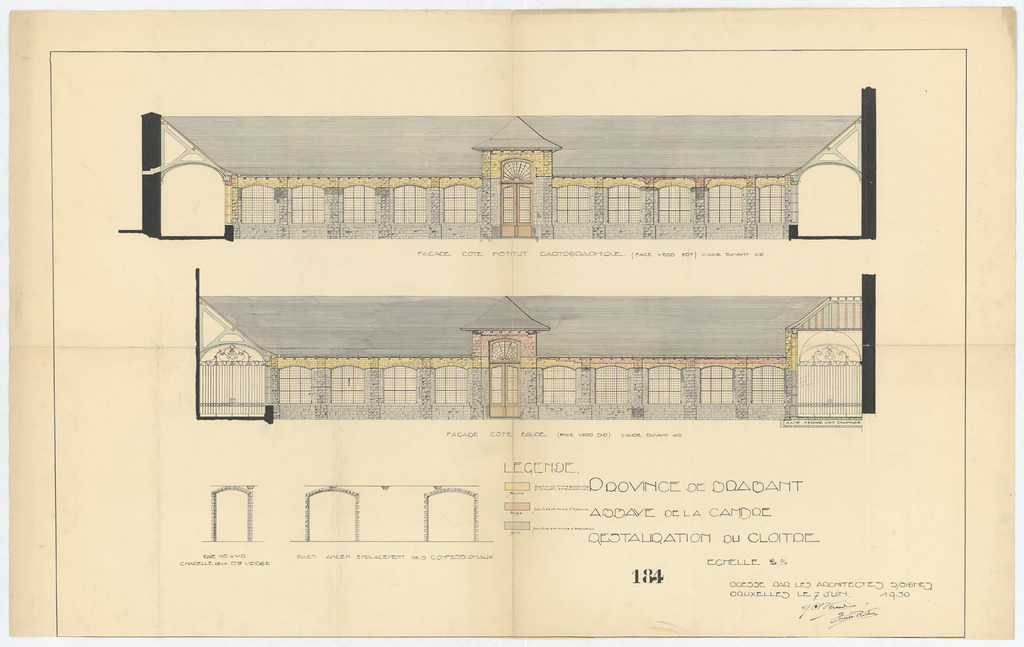 Opschrift: Province de Brabant. Abbaye de la Cambre. Restauration du cloître. Omschrijving plan: opstand gevels Datum KCML: deze informatie wordt niet vermeld op het archiefstuk Archiefnummer: B1667