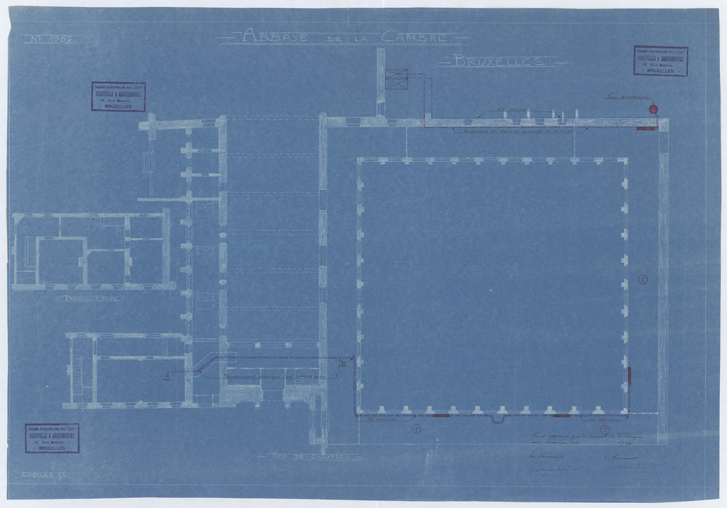Opschrift: Abbaye de la Cambre. Bruxelles. Omschrijving plan: plattegrond niveau 0 Datum KCML: deze informatie wordt niet vermeld op het archiefstuk Archiefnummer: B1672